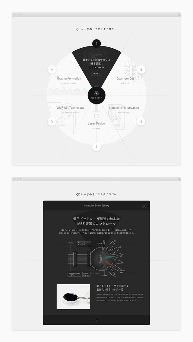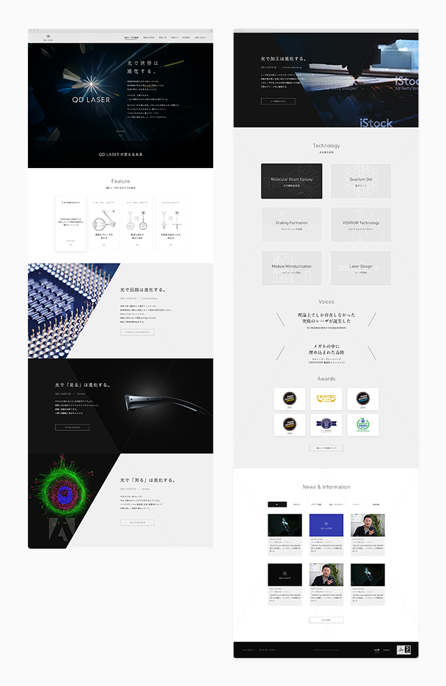 量子ドットを用いた技術の開発・製造・販売を手がける株式会社QDレーザのWebデザインを手がけました。光を操る技術によって人間の未来を変えようと富士通研究所のスピンオフベンチャーとして生まれた同社が、未来に秘める可能性を表現しています。