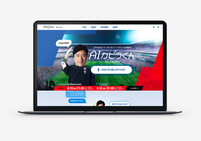 2018年FIFAワールドカップのロシアとの対戦をAIによって予想する「AIカビラくん」。オンライン上でも体験できるようにと開設されたWebサイトのデザインを担当しました。