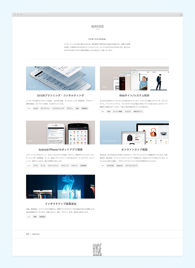 We designed the website for HYGE Interface Inc., a company that creates an intermediary interface between people.