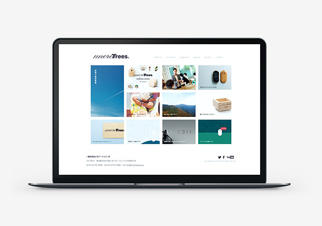 Led by a musician Ryuichi Sakamoto, More Trees began in 2009 as a forest conservation organization. We have designed their tools for disseminating information of the organization and also revised their website.