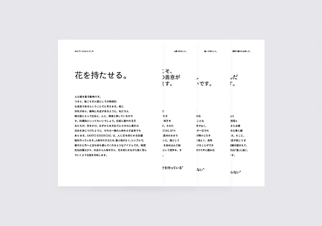 2018SS SANYO ESSENTIALSのカタログ制作は、コーポレートブランドであるSANYO ESSENTIALSをどう定義するかという点からスタートしました。