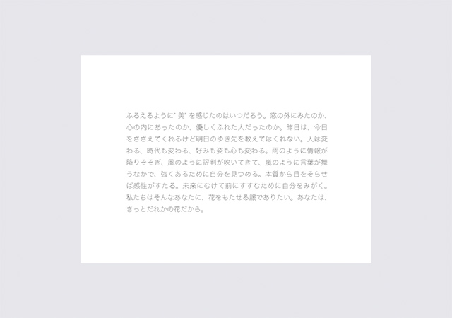 Working on this as the basis, we have developed this to their main catch copy/body copy that is suitable for their Spring and Summer collections.