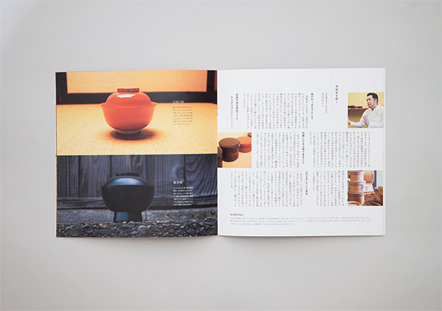映像はアートディレクター信藤三雄が監督・撮影を務め、家族で手がける漆器屋だからこそ生まれる雰囲気を忠実に捉えその土地ならではの空気と漆琳堂らしさを伝えています。パンフレットでは越前漆器の歴史や文化、工程と技術を中心に伝え、漆琳堂が漆器を作り続ける意味をデザインやテキストによって表現しています。