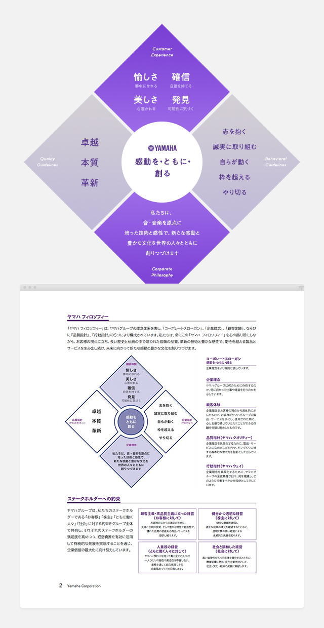 2016年経営戦略の再構築を経て中期3カ年計画を発表したヤマハ。発表に至るまでに社内では経営の骨子とコンセプトメイクのためのプロジェクトチームが結成され、同時にヤマハの核となる価値を言葉によって明確に表現するためのワーディング検証が行われていました。